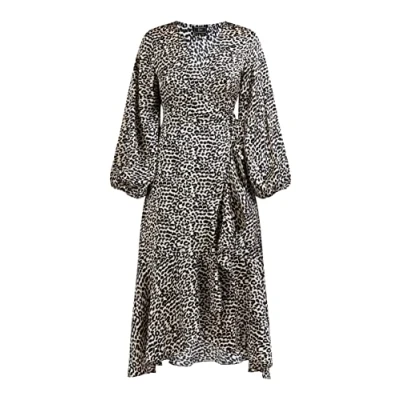 Leopard Print Wrap Dress Silky, shiny material Deep V-neck Ruffle at skirt hem Lace-up