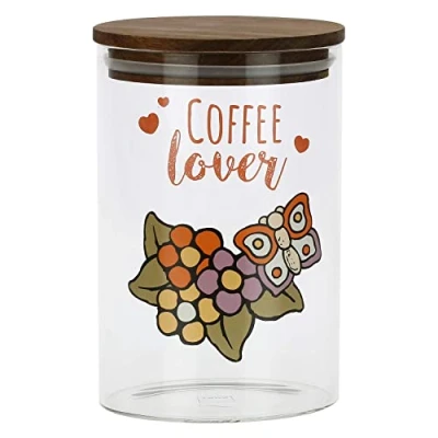 Coffee pod holder With floral decoration Made of glass and acacia wood