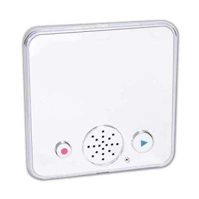 Entertaining and interactive – Our TickiT Sound Bank Plus Mirror is a fun and interactive way for your child to record their own voice, their favourite sounds or listen to pre-recorded messages. Easy to use — The device is very easy to use and has large buttons to identify playback and recording functions. The possibilities are endless and the audiovisual design draws your child's attention. Develop skills: An appealing device for your child to explore sounds and develop listening and communication skills. Quality — The microphone is of high quality and ensures clear sound recording and playback. There are 3 sound levels to choose from, so you can choose the option suitable for your environment. Package includes: 1 x mirrored sound bank with clear plastic case. Requires 3 x AAA batteries (not included). Suitable for children over 3 years To record a message or sound, press and hold the red record button while talking into the grid. To play your sound or message, press the blue play button again to plug/start playback. An attached instructions are attached to the item.