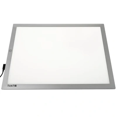 tickit A3 LIGHT PANEL -- Capture your child's imagination with our tickit LED light panels. A fascinating way for your child to explore light, colours and shapes. ROBUST AND PORTABLE -- The Panel is slimline with safe rounded edges, an anti-trip magnetic connector and 3 light level settings It is robust, portable and easy to wipe clean with a simple locking mechanism to prevent the panel from being turned off unintentionally. ILLUMINATE ART -- This LED panel is perfect for budding (or grown) artists! The adjustable lighting makes it great for drawing, stenciling and tracing. The lightweight design will make it easy to prop, pack and travel. EXCITING AND ENGAGING -- An exciting and engaging sensory experience for children that will allow them to investigate natural and man-made objects, colour mixing, shapes and patterns and so much more! STAYS COOL -- This LED light table top panel will keep cool during its lifespan of more than 50, 000 hours. That means even with 8 hours of constant use each day the panel would last more than 17 years. MEASUREMENTS -- A3 = L 46cm x W 34cm x D 0.8cm. Illuminated area L 41cm x W 28.5cm. INCLUDES -- 1 light panel, a universal power adaptor (UK/ EU/ US/ AU compatible) with low voltage mains power supply, instructions for use and an activity guide.