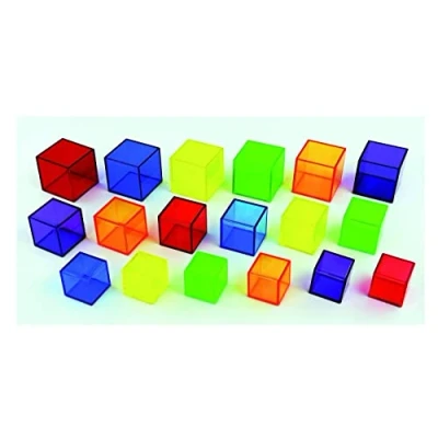 TRANSLUCENT CUBES -- Translucent Cube Set contains coloured acrylic 3D building blocks in 3 different sizes MOTOR SKILLS -- Ideal for developing fine motor skills through construction, exploring shape attributes, stacking, grouping, PERFECT WITH A LIGHT PANEL -- Use on a light panel where towers and structures look even more impressive with the light shining through the colourful cubes! COLOUR MIXING -- Ideal for learning about colour and colour mixing. SIZE -- of large cube 5cm SUITABLE -- Suitable from 12 months, Manufacturer: Commotion Ltd