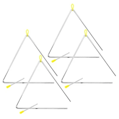 TIGER TRI28 4 MT 12" Samba Triangle Instruments Heavy duty Steel Triangles with Metal Strikers Ideal for School, Band or Home Use Pack of