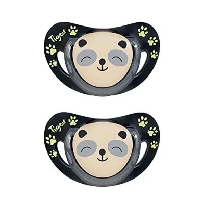 Package included: 2 x Silicone Physiological Pacifiers Lighter for less facial marking; With larger vents, it irritates the skin less; Built-in discreet ring around the button for comfortable use at all times; Physiological mouthpiece for healthy palate growth;