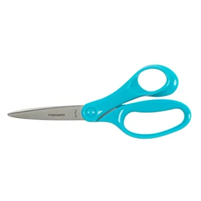 Practical scissors for advanced creative projects, ideal for children aged 12-14 years Longer blades made of high-quality stainless steel with tapered tip for precise cutting of various materials Ergonomically shaped handle to adapt to the natural shape and movement of the hands of children and teenagersRPA2023202023 Easy cleaning In the dishwasher Package contents: 1 x Fiskars student scissors, right-handed, total length: 18 cm, material: stainless steel/plastic, colour: turquoise, 1067855, Weight: 0.1212542441 pounds, Manufacturer: Fiskars