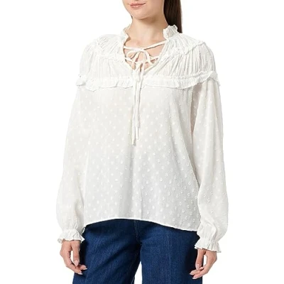 Cotton blouse Romantic boho style Cotton with polka dots Ruched design High ruffle collar