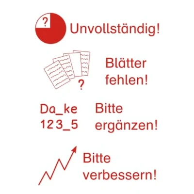 Screen printing stamp "Incomplete" | Stamp "Perpetuum" (40 x 10 mm) with the four designations "Incomplete, sheets missing, please supplement, please improve" in the stamp colour red. Ideal as a teacher stamp for teachers. Innovative technology: the screen printing technology makes an ink pad superfluous. While the special ink provides up to 5,000 contour sharp and clean marks, your fingers stay clean. Our teacher stamps are easy to refill. High quality: our "Perpetuum" screen printing stamps for teachers in the stamp colour red, made of robust plastic are compact, handy and guarantee long-lasting use without refilling. An absolute teacher "must have". Stamp variation | Discover our stamps for teachers "Gute Idee, Nicht aufgeben, Hammer, Incomplete, Wichtig, Unterschrift" and many more. Also available in English, Turkish, French and Russian. About us: TimeTEX is a family-run company in Germany. Our company motto is "Do not talk, but act", which is why we are strongly committed to the environment and integration. This care for people and the environment is also reflected in the quality of our products.