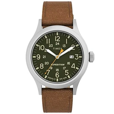 Matte silver-tone 40mm case, completed with a brown leather strap and buckle clasp INDIGLO Light Up Watch Dial and luminous hands Quartz movement with 3 hands Water resistant to 50m (165ft) ): in general, suitable for short periods of recreational swimming, but not diving or snorkeling.Everything you need and nothing you don't International products have separate terms, are sold from abroad and may differ from local products, including fit, age ratings, and language of product, labeling or instructions