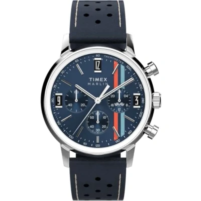 Timex Marlin Men's Chronograph Quartz Watch with a Leather Strap, blue, Bracelet