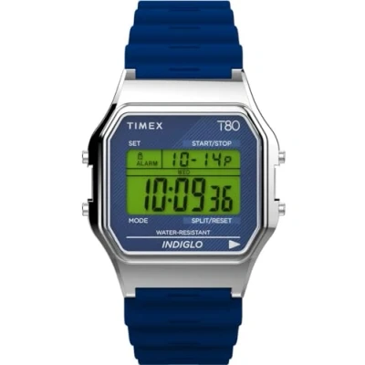 Timex Men Digital Watch with a Plastic Strap T80, Blue, Strap.