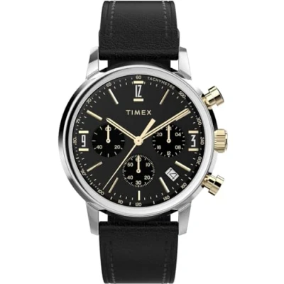 Timex Men's Chronograph Quartz Watch with Leather strap TW2W51500, Black,