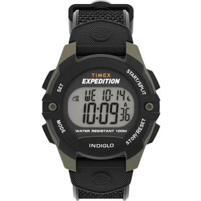 Timex Men's Expedition 41mm Watch Black Strap Digital Dial Green Case, Black, Modern
