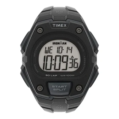 Black resin 45 mm case with acrylic crystral completed with black resin strap Digital dial display with digital numbers Digital watch with indiglo night-light Water resistant to 100 m (330 ft): in general, suitable for short periods of recreational swimming, but not diving or snorkeling Sports stopwatch with 30 lap memory, with countdown timer and customizable-alarm, fits wrist circumferences 150 - 205 mm (5.9 - 8.1 in)