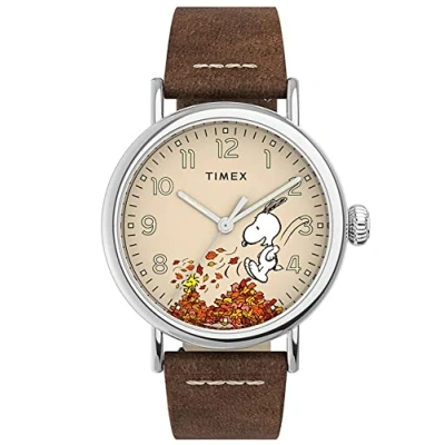 This elegant, fashionable watch set with beautiful stones is a perfect gift for New Year, birthday, Valentine's Day and so on. - This analogue watch has a function: luminous hands This high-quality watch has a brown leather strap (20 cm length and 19 mm width) with a pin buckle Case diameter: 40 mm, case height: 9 mm, case colour: silver, dial colour: beige Waterproof: 5 bars -Weight: 50g The watch comes in a beautiful, original gift box and has a 2 year warranty