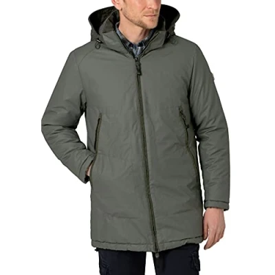Timezone Men's Attachable Hood Long Jacket 1, Olive Wood, M