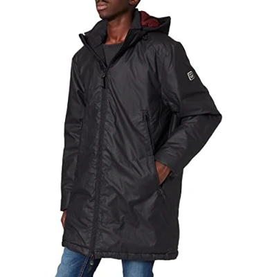 Timezone Men's Attachable Hood Long Jacket 1, Ultra black, S