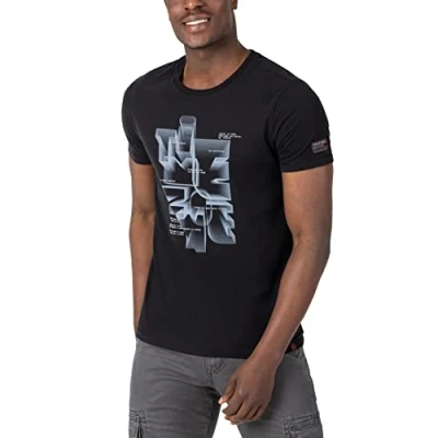 Timezone Men's Future Print T Shirt, Caviar Black, 3XL