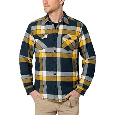 Timezone Men's Padded Flannell Overshirt Shirt, Navy Check, L