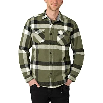 Timezone Men's Padded Flannell Overshirt Shirt, Olive Check, L