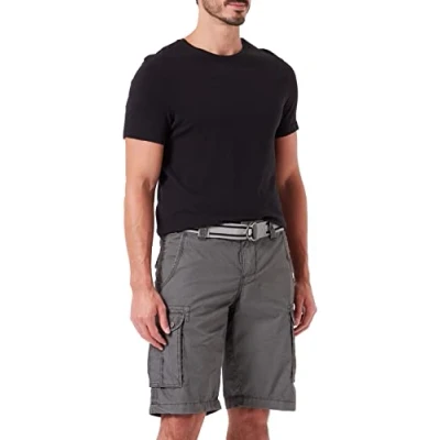 Regular fit with short legs Medium waist Waistband with button, belt loops, zip Side pockets with coin and additional zip pocket Cargo bellows pockets with Velcro fastener