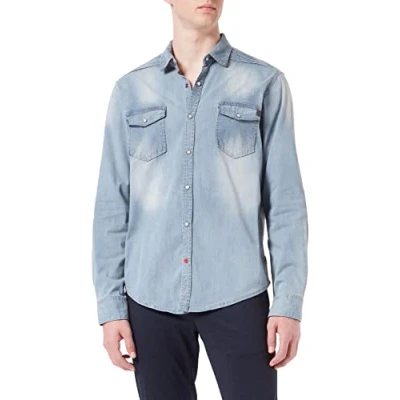 Timezone Men's Stretch Denim Shirt, Cool Blue Wash, S