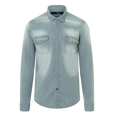 Timezone Men's Stretch Denim Shirt, Cool Grey Wash, S