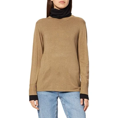 Timezone Women's Double Layer Turtleneck Sweater, Caramel Beige Melange, S