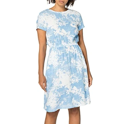 Timezone Women's Printed Basic Dress Casual, Blue Cut Out Flowers, XL