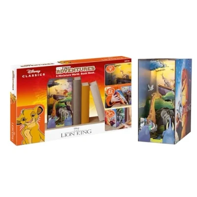 Disney magic as a bookend: The Lion King Book Nook brings the iconic scenes of the Disney classic right between your books - as a lovingly designed miniature bookend that awakens childhood memories and invites you to dream Atmospheric LED lighting: the integrated ambient lighting immerses the scene in warm light and brings Simba's journey through the savannah atmospherically to the fore - perfect for magical shelf moments day and night DETAIL LOVED AND HIGH QUALITY: Laser-cut wooden parts with brilliant print image make any movie scene come alive; From the lion lip to the jungle - each component has been carefully designed to capture the magic of the original Easy to assemble without prior knowledge: thanks to the well thought-out plug-in system, assembly is effortless; the enclosed illustrated instructions guide you step by step through the creative process; wood glue is recommended for fine elements Eye-catching & gift for Disney fans: as a decorative bookend, this Book Nook not only brings order to the shelf, but also a piece of film history - a wonderful gift for Disney lovers, collectors and craft fans of all ages, Manufacturer: Carrera Revell Europe GmbH