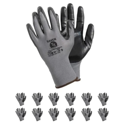 TK Gloves Raven - Mounting Gloves - Size 11, 12 Pairs Colour: Grey - Mounting Gloves Industrial Protective Gloves for Factories Mechanics & Workshop TK Gloves very manual Raven gloves are an economical choice for those who need a precise grip at a low price Insert made of grey polyester is thin, airy and flexible Pad coated with a nitrile coating provides precise grip Wrist brace keeps glove secure in hand Raven is a model designed for precise jobs that require precision Available in sizes: 6, 7, 8, 9, 10, 11. Materials: polyester/nitrile Complies with: EN 388:2016 (4121X), EN 420:2003+A1:2009, EN 407:2004 Color: Grey Knit/Black Coating