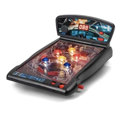 Space themed desktop pinball game Two flippers and ball launcher Six light-up bumpers Authentic arcade sound effects and score tally Pinball game table Two flippers and pull-action launcher, Manufacturer: Tobar