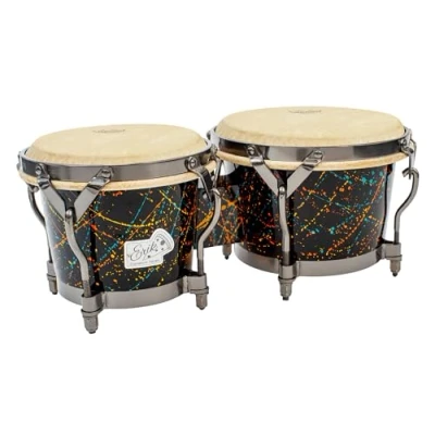 High-quality materials for a first-class sound: The Toca Bongo Erik Piza combines robust fiberglass shells with high-quality synthetic heads from Remo for a powerful and clear sound. versatile application possibilities: With sizes of 7 and 9 inches, this bongo offers an ideal sound spectrum, perfect for beginners and professionals alike. Elegant design with a unique look: the glossy black surface with colored splashes and the hardware in an elegant Black Mirror Chrome finish make the bongos a visual highlight. Traditional construction for an authentic sound: The classic Traditional Hoops ensure a stable tuning and a traditional playing feel that musicians appreciate. Durability and playing comfort: Thanks to the careful workmanship and high-quality materials, this bongo is durable, light and comfortable to play - ideal for the studio, stage or rehearsal room.