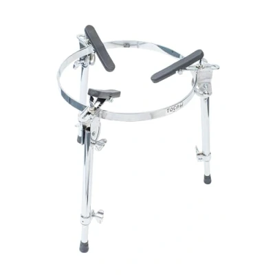 Robust metal construction - Heavy and stable design for a secure hold of your conga while playing. Height-adjustable legs - Adjustable for different playing positions and comfort. Adjustable rubber pads - Flexible in angle and diameter, suitable for all common conga sizes and manufacturers. Compact and easy to store - Folding legs for easy transportation and space-saving storage. Chrome-plated finish - Stylish appearance and long-lasting protection against corrosion.