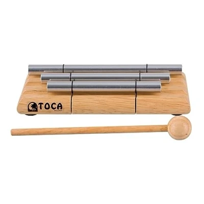 Toca’s new Tone Bars Brilliant, yet warm accent to your music Create a clear tone and lengthy sustain The aluminium alloy bars are suspended by a string, Wooden cradle Includes a wooden mallet, 3 tone bars