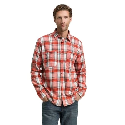 TOM Tailor Comfort Checked Shirt, Men's, Size: XXL, Tango orange/multicolor