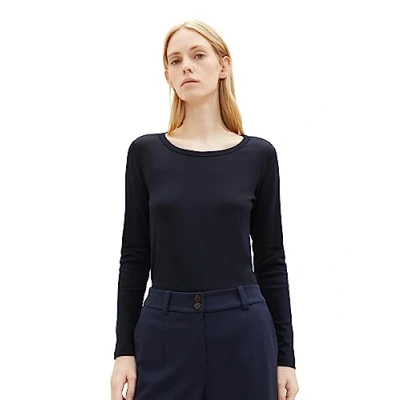 TOM TAILOR Damen Basic Langarmshirt mit Rippstruktur