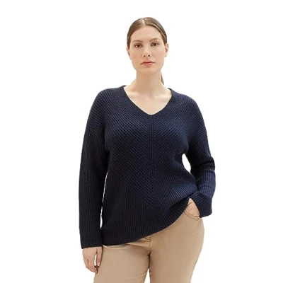 TOM TAILOR Damen Basic Pullover mit V Ausschnitt