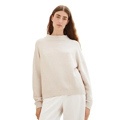 TOM TAILOR Denim Damen Boxy Relaxed Pullover mit Stehkragen