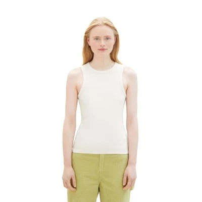 Tom Tailor Denim Damen Basic Top mit Rippstruktur, 10348 Gardenia White, XL
