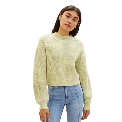 TOM TAILOR Denim Damen Boxy Relaxed Pullover mit Stehkragen