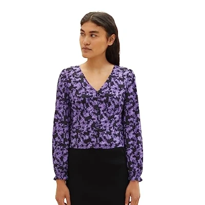 TOM TAILOR Denim Damen Cropped Bluse mit Muster