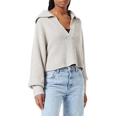 TOM TAILOR Denim Damen Strickpullover mit Kragen 1033052, 30224 Cloud Grey Melange, L