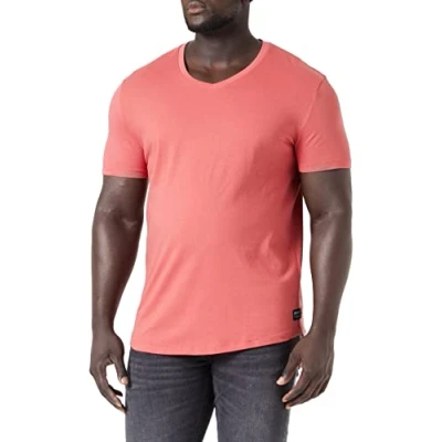 TOM TAILOR Denim Herren Basic T Shirt mit V Ausschnitt aus Bio Baumwolle