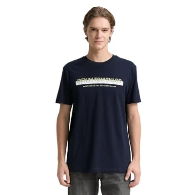 TOM TAILOR Denim Herren Slim Fit T Shirt mit Logo Print aus Baumwolle