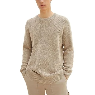 Tom Tailor Denim Men's Basic Multicolour Knitted Jumper, 32775 ecru Tonal Mouline, M
