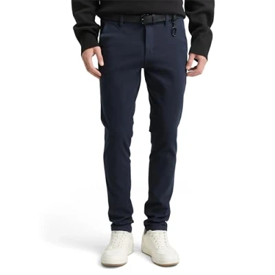 Textured chinos with an additional PU leather belt. With side pockets and welt pockets on the back. Made of an easycare cotton fabric with a slight stretch content. Sale | Outer fabric material: 98% cotton, 2% elastane | Sale order at Zalando.ie! Size: 34x32. Color: Navy dobby. Pattern: plain.