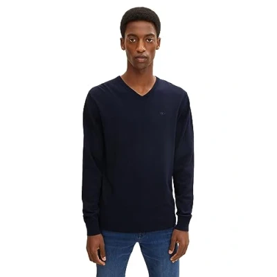 TOM TAILOR Herren Basic Pullover 202212 Strickpullover V Ausschnitt, 13160 Knitted Navy Melange, XL