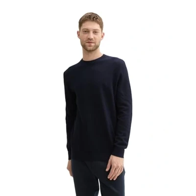 TOM TAILOR Herren Basic Strickpullover mit Rundhalsausschnitt,13160 Knitted Navy Melange, XXL