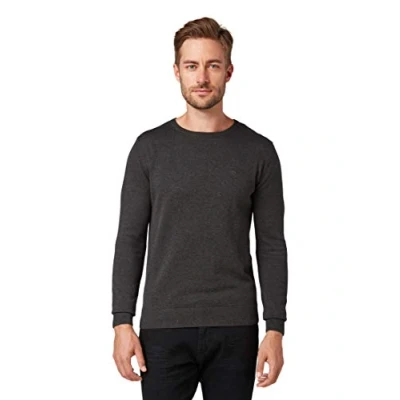 TOM TAILOR Herren Pullover 202212 Strickpullover Crewneck, 10617 Black Grey Melange, S