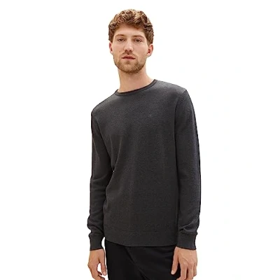 TOM TAILOR Herren Pullover 202212 Strickpullover Crewneck, 10617 Black Grey Melange, XL