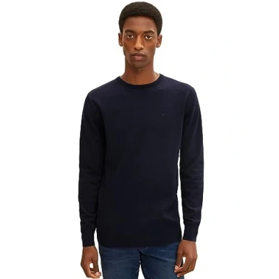 TOM TAILOR Herren Pullover 202212 Strickpullover Crewneck, 13160 Knitted Navy Melange, S